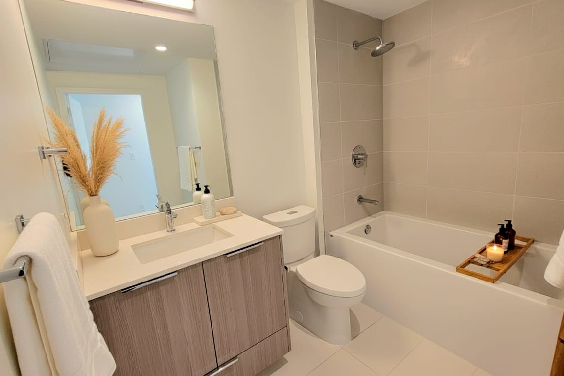 A thoughtfully designed 2-bed, 2-bath condo with 802 sq ft of elegant interior space, complemented by a large 120 sq ft balcony offering sweeping city views. Built in 2022, this home features air conditioning, wide-plank flooring, sleek cabinetry, premium appliances, and exceptional natural light throughout.