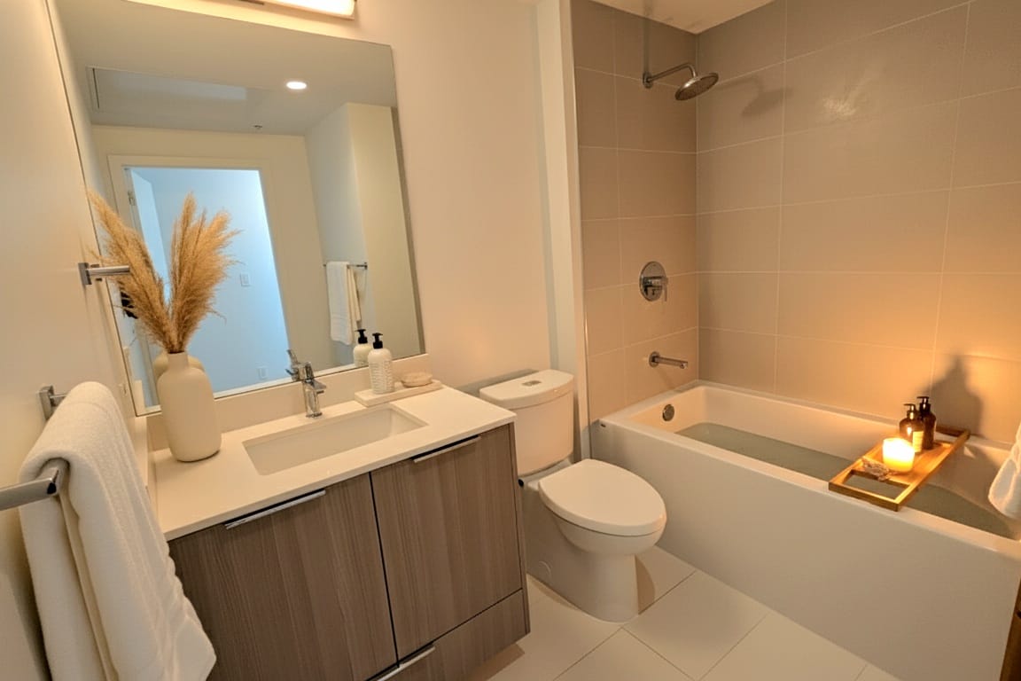 | Flooring: | Wide-Plank Laminate & Tile |