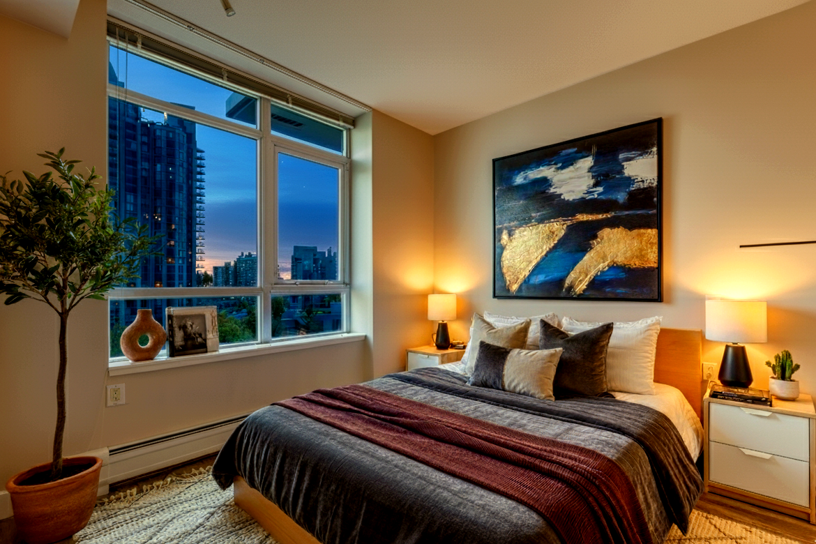 Bright 2-bed, 2-bath corner condo at Ventana offering 780 sqft of open living with floor-to-ceiling windows, balcony, and harbour, city & mountain views.